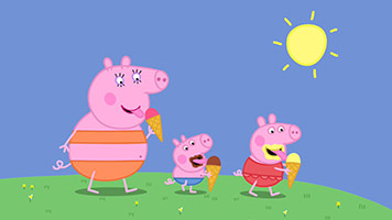 قسمت های کارتون پپاپیگ شامل فعالیت های روزانه ای است که هر کودکی آنها را انجام میدهد ، مانند بازی در حیاط، دیدن پدربزرگ و مادربزرگ ، یا راندن دوچرخه و بازی با دوستان.